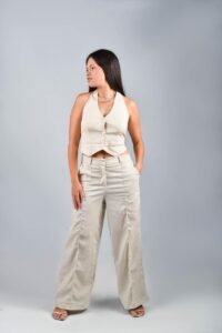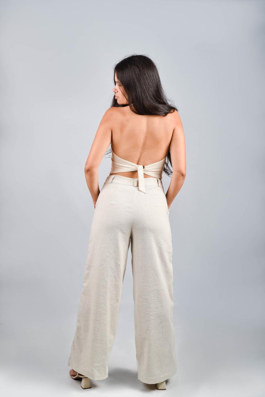 Blusa frente única feito em linho, abotoamento frontal e regulagem nas costas.
